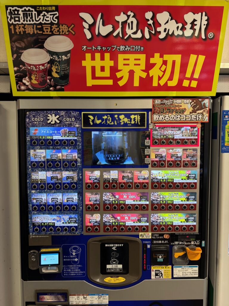コーヒーを求めて自販機コーナーに行くと、ミル挽き珈琲の文字が目に止まり即決。